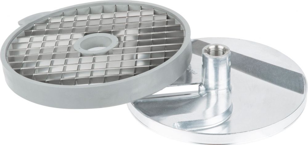 Диск-кубики Robot Coupe 28181 используется совместно с овощерезками CL50 и CL50 Ultra, CL52, CL55, CL60 и кухонными процессорами R502G, R752 для нарезки овощей и фруктов кубиками и дальнейшего использования их в качестве ингредиентов для приготовления супов, салатов, гарниров и других продуктов на предприятиях общественного питания и торговли. Идеально подходит для нарезки свежей моцареллы. Изделие выполнено из алюминия.