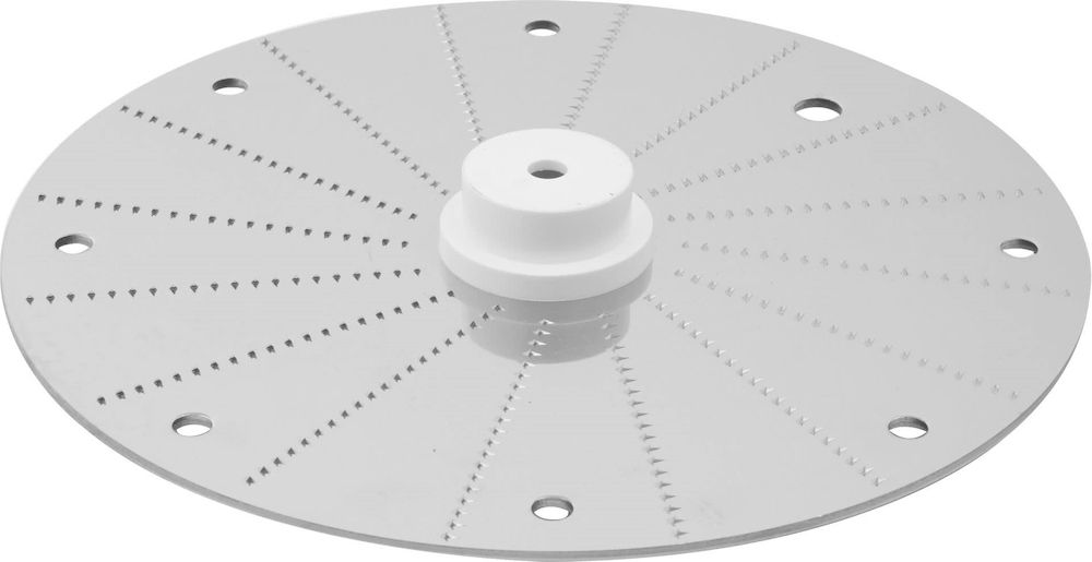 Диск-терка Robot Coupe 27079 используется совместно с овощерезками CL20, CL30 Bistro, CL40 и кухонными процессорами R211 XL и R211 XL Ultra, R301 Ultra, R402 для натирания и шинковки редьки, редиса или хрена и дальнейшего использования их в качестве ингредиента для приготовления супов, салатов, гарниров и других блюд на предприятиях общественного питания и торговли. Изделие выполнено из нержавеющей стали.
