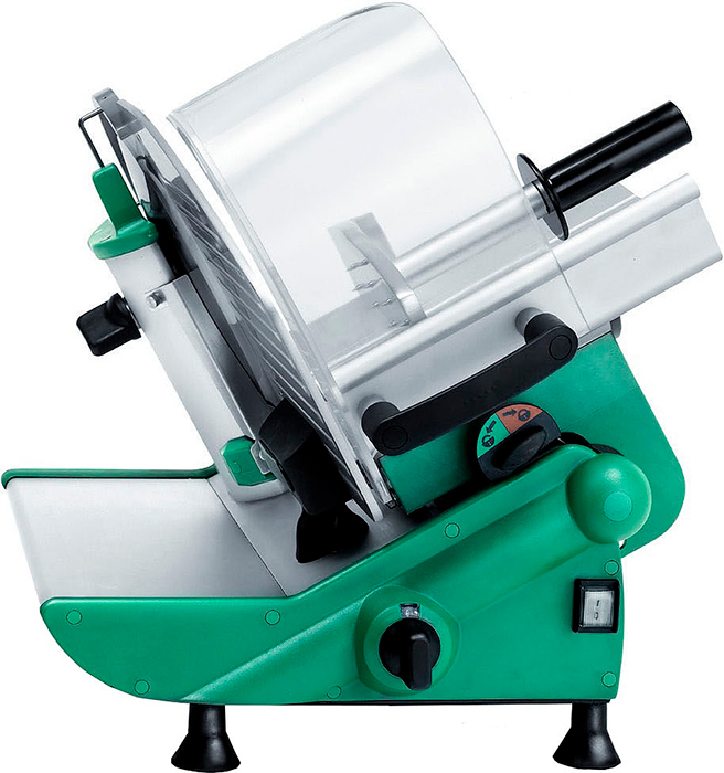 Слайсер для сыра Rheninghaus Prima 250 используется на предприятиях общественного питания и торговли. Модель оснащена затачивающим устройством, позволяющим постоянно держать режущую кромку ножа острой, и съемным держателем для продукта. Внешние детали выполнены из алюминия, держатель для продукта - из пищевой нержавеющей стали.