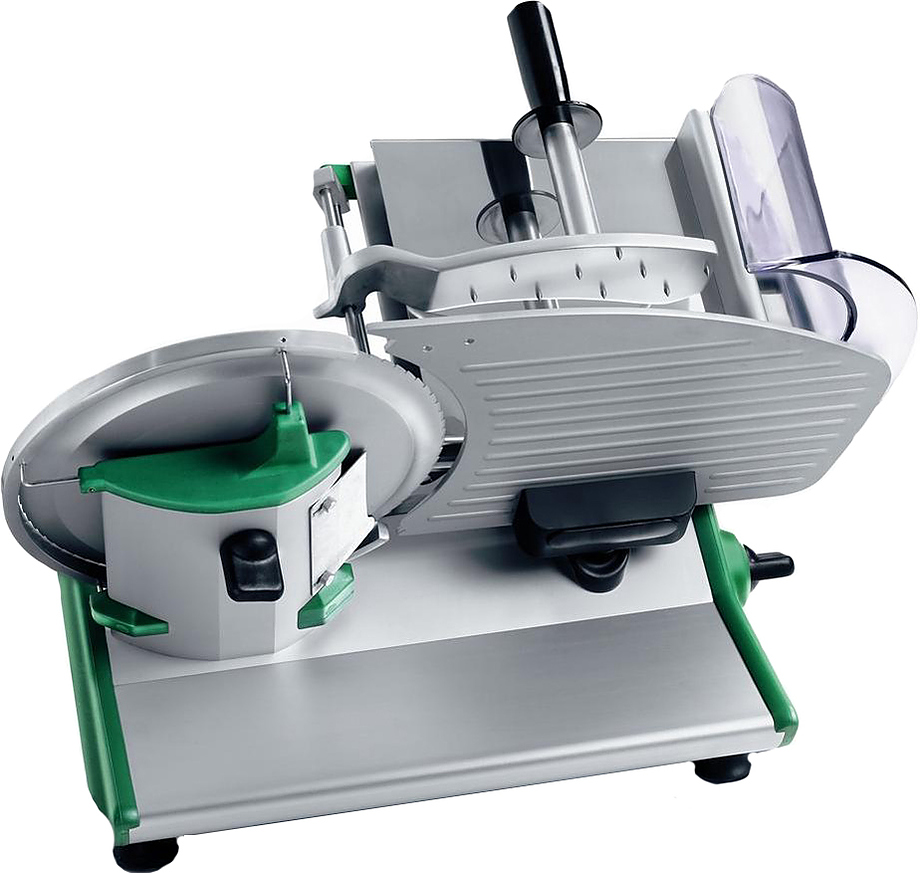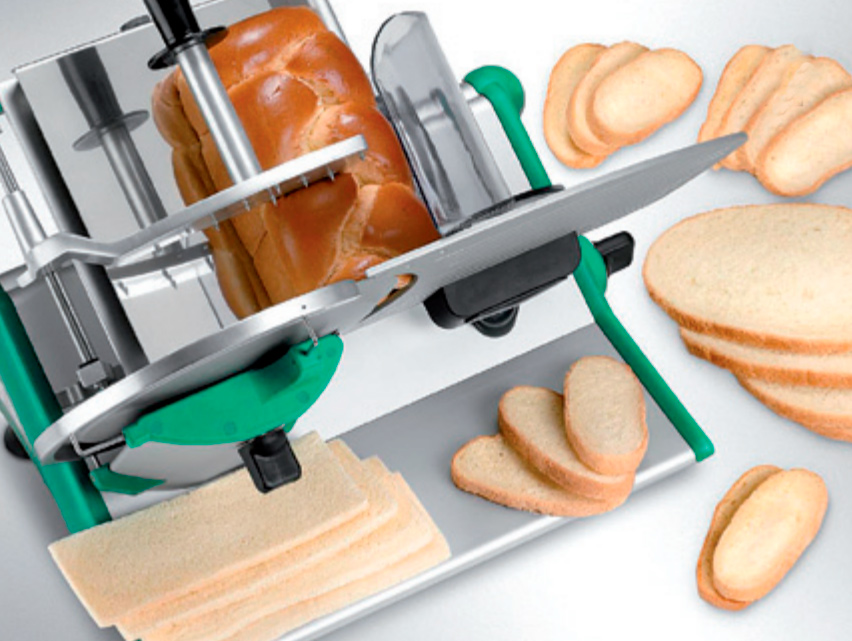 Слайсер для хлеба Rheninghaus Prima 300 используется на предприятиях общественного питания и торговли для нарезки хлебобулочных изделий любого типа. Модель оснащена затачивающим устройством, позволяющим постоянно держать режущую кромку ножа острой, и съемным держателем для продукта. Внешние детали выполнены из алюминия, держатель для продукта - из пищевой нержавеющей стали.