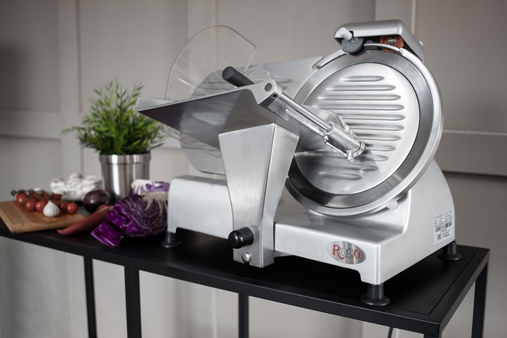 Слайсер Rosso 250ES-10 предназначен для нарезки продуктов на ломтики заданной толщины на предприятиях общественного питания и торговли. Корпус выполнен из нержавеющей стали.