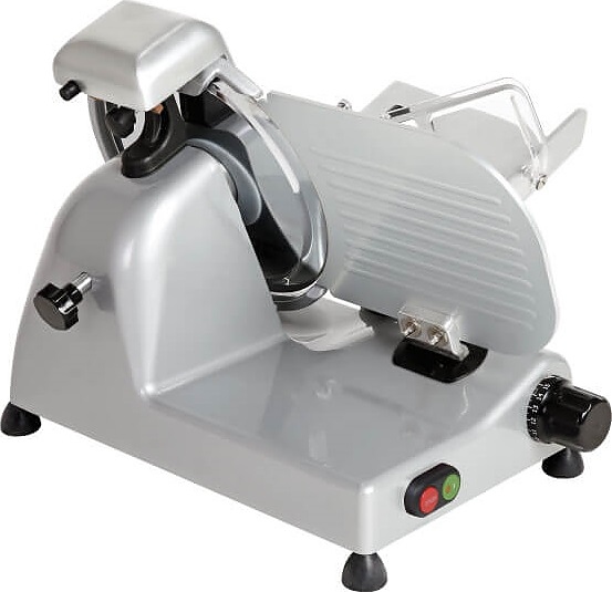 Слайсер RGV Lusso 300 S-L Prof применяется для тонкой нарезки твердых сыров, овощей, фруктов и других видов продуктов на предприятиях общественного питания, торговли и пищевых производствах. Модель оборудована встроенным затачивающим устройством. Материал базы - литой, лакированный алюминий, материал защитного крыла для диска, устройства подачи продукта и перегородок - анодированный алюминий.