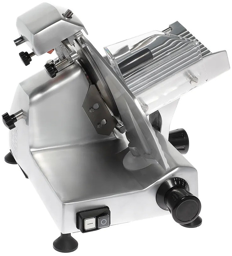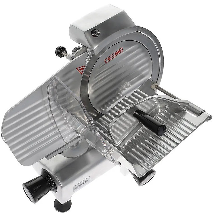 Слайсер VIATTO HBS-195JS предназначен для нарезки равными ломтиками приготовленного мяса, колбасных изделий, сыра и овощей на предприятиях общественного питания, торговли и пищевых производствах. Модель оснащена затачивающим устройством, прикрепленным на каретку. Материал корпуса - алюминиевый сплав.