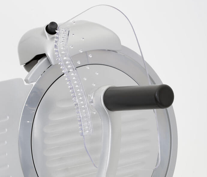 RGV Luxury 275/S PROF применяется для нарезки на ломтики мяса, сыра, колбасных изделий и других продуктов питания на предприятиях общественного питания, торговли и пищевых производствах. Модель оборудована регулировкой толщины, вращающейся рукояткой и съемным заточным устройством. Материал корпуса - окрашенный алюминий, материал лезвия - закаленная сталь с тефлоновым покрытием, материал держателя - алюминий, материал крышки и лотка - литой анодированный алюминий.