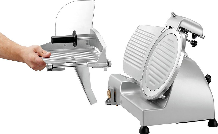 Слайсер Bartscher 275 Plus используется для нарезки колбасных изделий ломтиками на предприятиях общественного питания, торговли и пищевых производствах. Модель оборудована прижимным механизмом, заточным устройством и направляющей съемной наклонной кареткой с 2 ручками. Материал корпуса - алюминий, плексиглас и пластик, материал ножа - высококачественная нержавеющая сталь.