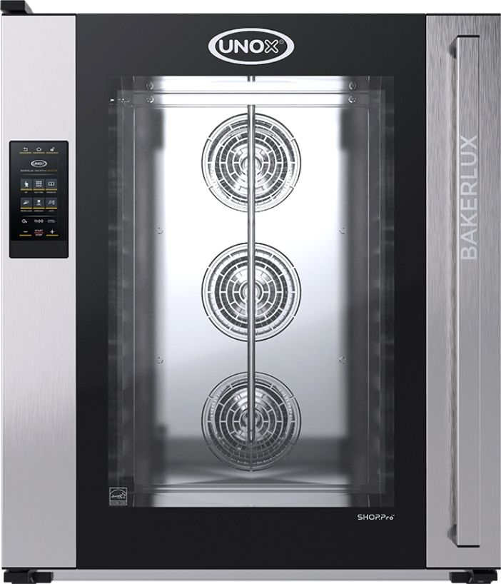 Печь конвекционная UNOX XEFT-10EU-EMRV серии BakerLux Shop.Pro предназначена для приготовления различных блюд, выпечки хлебобулочных и кондитерских изделий на предприятиях общественного питания и торговли, в пекарнях и кондитерских. Модель оснащена электронным управлением, светодиодной подсветкой и L-образными направляющими. Легко открывающееся внутреннее стекло облегчают чистку и обеспечивает максимальную гигиену. Камера выполнена из нержавеющей стали, направляющие - из гнутого стального листа.