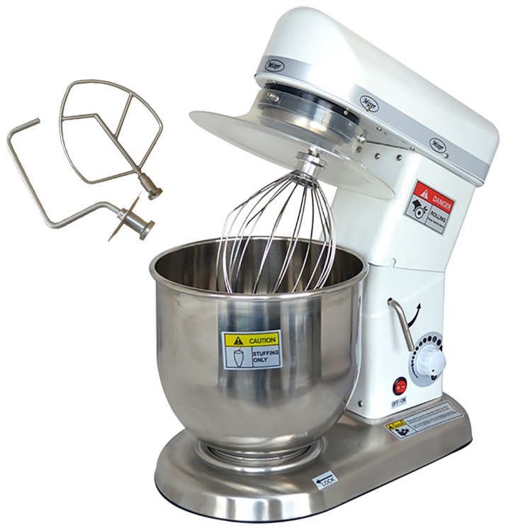 Планетарный миксер Hualian B7 используется на предприятиях общественного питания, торговли и пищевых производствах для замеса теста, творожных изделий, крема, мусса, пюре, суфле, сливок и соусов. Модель оснащена защитой от перегрева, блокировкой переключателя и индикатором. Материал изделия - высококачественная нержавеющая сталь.