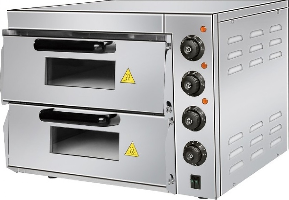 Печь Hualian HEP-2ST используется для приготовления пиццы на предприятиях общественного питания, торговли и пищевых производствах. Модель оборудована электромеханической панелью управления, термостатами, 2 камерами с мощными трубчатыми электронагревателями (ТЭНами), откидными дверьми и дверцей с прямоугольным смотровым окном. Материал корпуса и внутренней облицовки - высококачественная нержавеющая сталь.