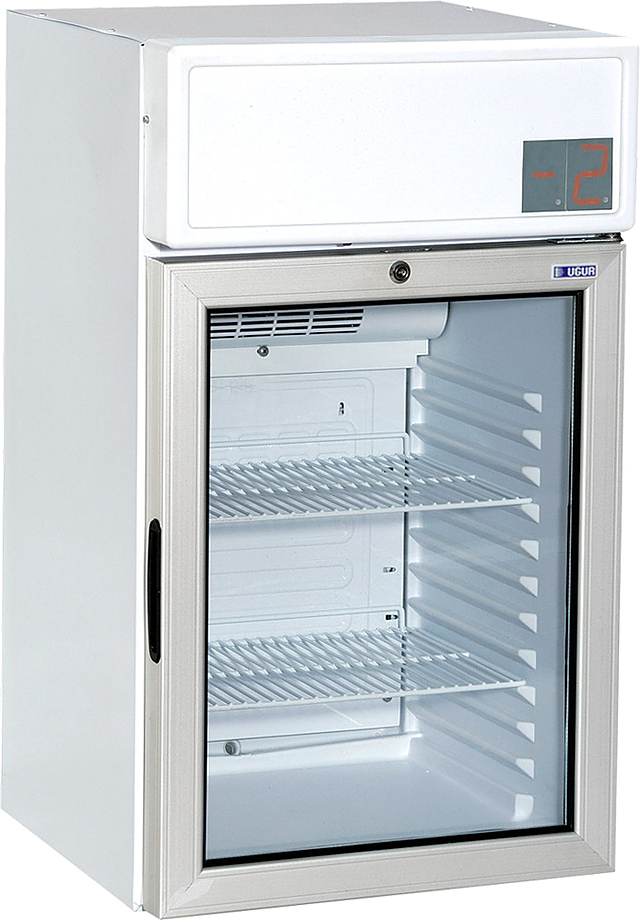 Холодильный шкаф UGUR USS 95 DTKL SZ предназначен для демонстрации, охлаждения и кратковременного хранения различных продуктов и напитков на предприятиях общественного питания и торговли. Модель оснащена 2 полками-решетками, механическим термостатом, внутренней подсветкой, самозакрывающейся дверью и регулируемыми по высоте ножками. Дверца выполнена из закаленного стекла.