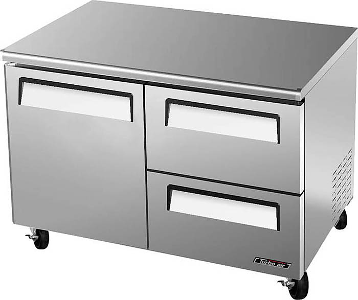 Холодильный стол Turbo air CMUR-48-2D-2 используется на предприятиях общественного питания, торговли и пищевых производствах для обработки, охлаждения и кратковременного хранения продуктов, а также для раскатки теста. Стол оснащен динамической системой охлаждения и аналоговым управлением. Материал корпуса - нержавеющая сталь (пожаробезопасные стенки 60 мм), материал пола - нержавеющая сталь с алюминиевыми вставками, материал направляющих - нержавеющая сталь, уплотнения выполнены из АБС-пластика.