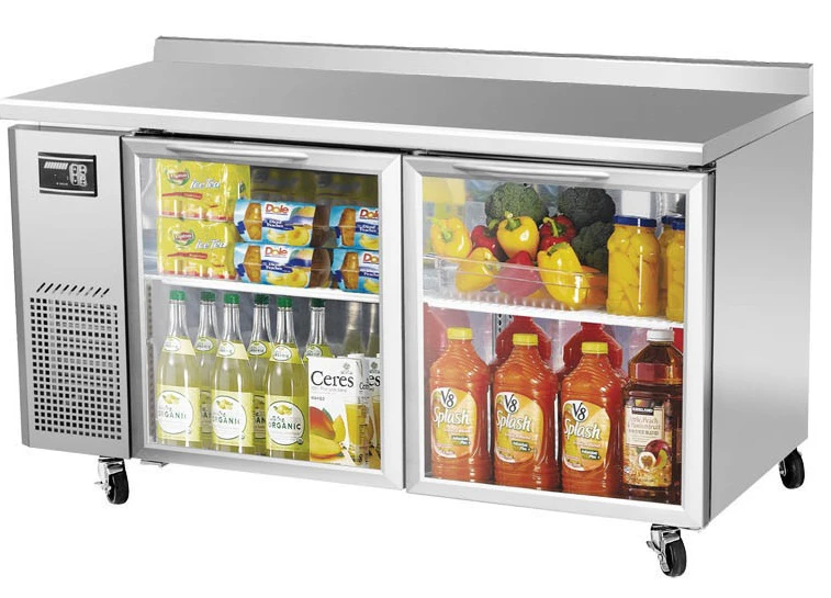 Холодильный стол Turbo air KGWR15-2-750 используется на предприятиях общественного питания, торговли и пищевых производствах для обработки ингридиентов, приготовления блюд, а также демонстрации и кратковременного охлаждения продуктов и напитков. 2 стеклянные двери, 2 регулируемые полки. Материал корпуса и дверных петель - нержавеющая сталь, материал задней и нижней панели - гальванизированная сталь, материал пола - нержавеющая сталь с алюминиевыми вставками, материал полок - толстая стальная проволока с виниловым покрытием, материал уплотнения - ABS-пластик.