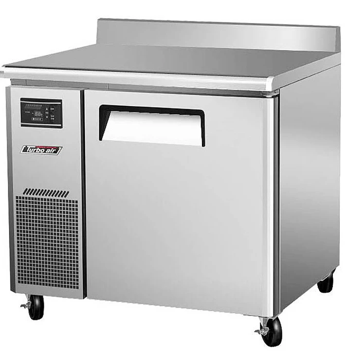Холодильный стол Turbo air KWR9-1GN-700 используется для охлаждения и хранения пищевых продуктов, а также для обработки ингредиентов на предприятиях общественного питания, торговли и пищевых производствах. Динамическая система охлаждения. Стол установлен на 4 колесах, оснащен дверью с эргономичными ручками и 5 направляющими под гастроемкости. Материал корпуса, ножек и направляющих - нержавеющая сталь, материал задней и нижней панелей - гальванизированная сталь, материал пола - нержавеющая сталь с алюминиевыми вставками, материал полок - толстая стальная проволока с виниловым покрытием, материал уплотнения - ABS-пластик.