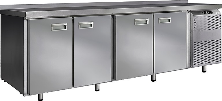 Холодильный стол Finist СХС-700-4 используется на предприятиях общественного питания, торговли и пищевых производствах для хранения и обработки полуфабрикатов из мяса и рыбы, заготовок для салата, охлажденных напитков и прочих пищевых продуктов. Управление при помощи кнопочной панели управления, оснащенной цифровым дисплеем. 4 холодильные камеры с распашными дверцами, агрегатный отсек располагается сбоку. Стол установлен на ножки с подпятниками. Материал корпуса - нержавеющая сталь.