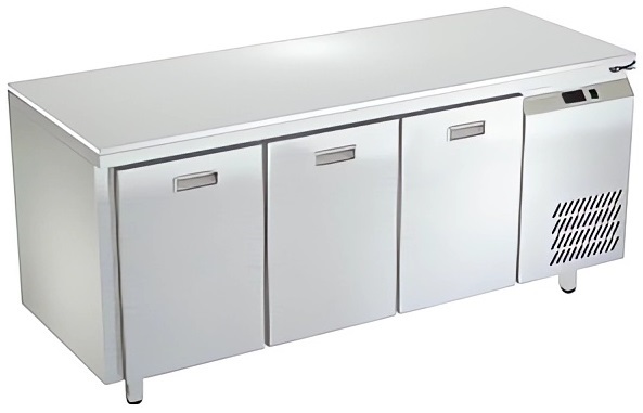 Холодильный стол Техно-ТТ СПБ/О-523/03-1806 предназначается для раскатки теста, обработки, охлаждения и кратковременного хранения продуктов и напитков на предприятиях общественного питания, торговли и пищевых производствах. Секции оснащены направляющими и ящиками с доводчиками. Материал корпуса - нержавеющая сталь AISI 430, материал столешницы - полипропилен, материал задней панели и дна - оцинкованная сталь.