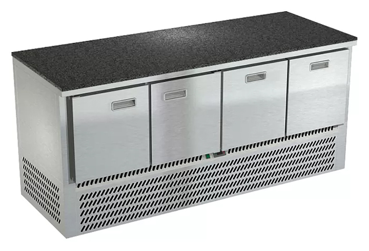 Холодильный стол Техно-ТТ СПН/О-322/22-1906 предназначается для раскатки теста, обработки, охлаждения и кратковременного хранения продуктов и напитков на предприятиях общественного питания, торговли и пищевых производствах. Секции оснащены направляющими и ящиками с доводчиками. Материал корпуса - нержавеющая сталь AISI 430, материал столешницы - гранит (толщина 20 мм), материал задней панели и дна - оцинкованная сталь.