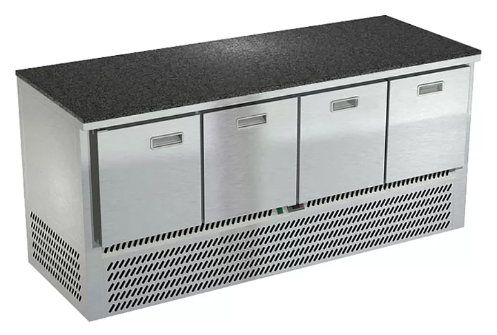 Холодильный стол Техно-ТТ СПН/О-322/13-1906 предназначается для раскатки теста, обработки, охлаждения и кратковременного хранения продуктов и напитков на предприятиях общественного питания, торговли и пищевых производствах. Секции оснащены направляющими и ящиками с доводчиками. Материал корпуса - нержавеющая сталь AISI 430, материал столешницы - гранит (толщина 20 мм), материал задней панели и дна - оцинкованная сталь.