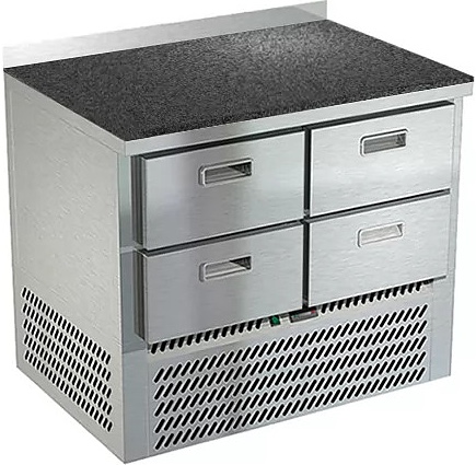 Холодильный стол Техно-ТТ СПН/О-423/04-1006 предназначается для раскатки теста, обработки, охлаждения и кратковременного хранения продуктов и напитков на предприятиях общественного питания, торговли и пищевых производствах. Секции оснащены направляющими и ящиками с доводчиками. Материал корпуса - нержавеющая сталь AISI 430, материал столешницы - гранит (толщина 20 мм), материал задней панели и дна - оцинкованная сталь.