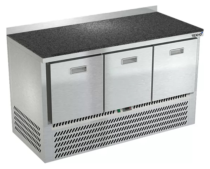 Холодильный стол Техно-ТТ СПН/О-423/03-1406 предназначается для раскатки теста, обработки, охлаждения и кратковременного хранения продуктов и напитков на предприятиях общественного питания, торговли и пищевых производствах. Секции оснащены направляющими и ящиками с доводчиками. Материал корпуса - нержавеющая сталь AISI 430, материал столешницы - гранит (толщина 20 мм), материал задней панели и дна - оцинкованная сталь.