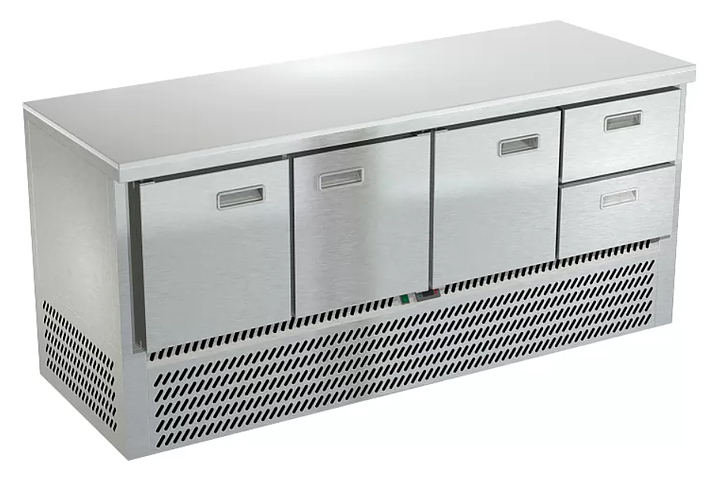 Холодильный стол Техно-ТТ СПН/О-522/32-1907 предназначается для раскатки теста, обработки, охлаждения и кратковременного хранения продуктов и напитков на предприятиях общественного питания, торговли и пищевых производствах. Секции оснащены направляющими и ящиками с доводчиками. Материал корпуса - нержавеющая сталь AISI 430, материал столешницы - полипропилен (толщина 20 мм), материал задней панели и дна - оцинкованная сталь.
