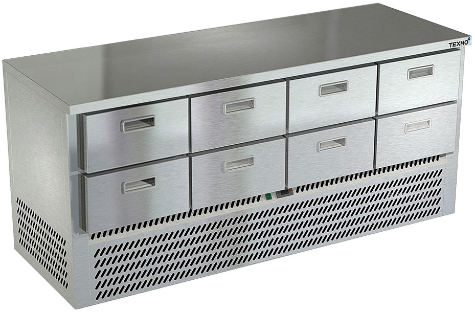 Холодильный стол Техно-ТТ СПН/О-523/08-1907 предназначается для раскатки теста, обработки, охлаждения и кратковременного хранения продуктов и напитков на предприятиях общественного питания, торговли и пищевых производствах. Секции оснащены направляющими и ящиками с доводчиками. Материал корпуса - нержавеющая сталь AISI 430, материал столешницы - полипропилен (толщина 20 мм), материал задней панели и дна - оцинкованная сталь.