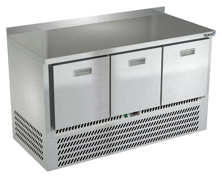 Холодильный стол Техно-ТТ СПН/О-223/03-1407 предназначается для раскатки теста, обработки, охлаждения и кратковременного хранения продуктов и напитков на предприятиях общественного питания, торговли и пищевых производствах. Секции оснащены направляющими и ящиками с доводчиками. Материал корпуса и столешницы - нержавеющая сталь AISI 430, материал задней панели и дна - оцинкованная сталь.