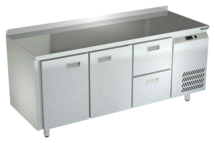 Холодильный стол Техно-ТТ СПБ/Т-222/22-1806 предназначается для раскатки теста, обработки продуктов и ингредиентов, заморозки и хранения продукции, а также для размещения теплового оборудования на предприятиях общественного питания, торговли и пищевых производствах. Двери оснащены доводчиками. Материал корпуса и столешницы - нержавеющая сталь AISI 430, материал дна и задней панели - оцинкованная сталь.
