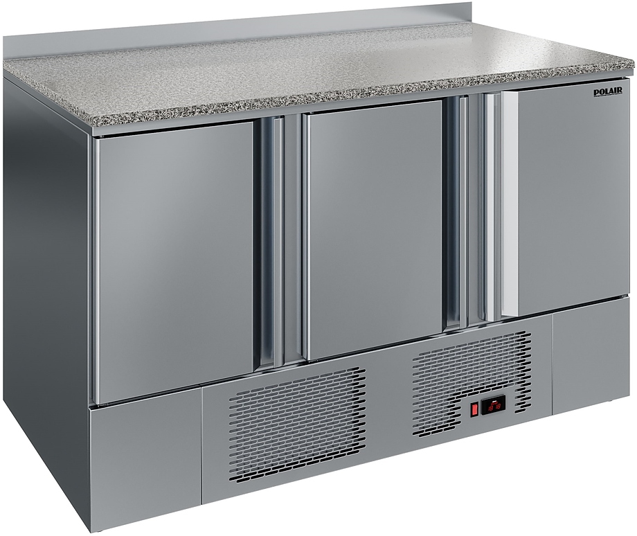 Холодильный стол POLAIR TMi3GN-G используется на предприятиях общественного питания, торговли и пищевых производствах для хранения продуктов и обработки ингредиентов. Модель оснащена автоматической оттайкой, динамическим охлаждением, терморегулятором, уплотнителем с магнитными вставками и регулируемыми ножками. Материал корпуса и дверей - нержавеющая сталь, материал столешницы - гранит.