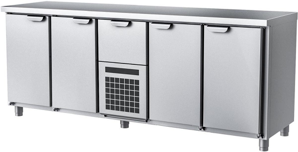 Холодильный стол HappyChef TC BD 1-1-CBR-1-1 используется на предприятиях общественного питания, торговли и пищевых производствах для хранения и обработки продуктов питания в охлажденном виде. Модель оснащена быстросъемными модулями, моющимся фильтром и регулируемыми ножками. Материал корпуса - высококачественная нержавеющая сталь AISI 430, материал столешницы - высококачественная нержавеющая сталь AISI 304 (толщина 2 мм).