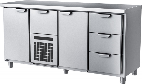 Холодильный стол HappyChef TC GH 1-CBR-1-3 используется на предприятиях общественного питания, торговли и пищевых производствах для хранения и обработки продуктов питания в охлажденном виде. Модель оснащена быстросъемными модулями, моющимся фильтром и регулируемыми ножками. Материал корпуса - высококачественная нержавеющая сталь AISI 430, материал столешницы - высококачественная нержавеющая сталь AISI 304 (толщина 2 мм).