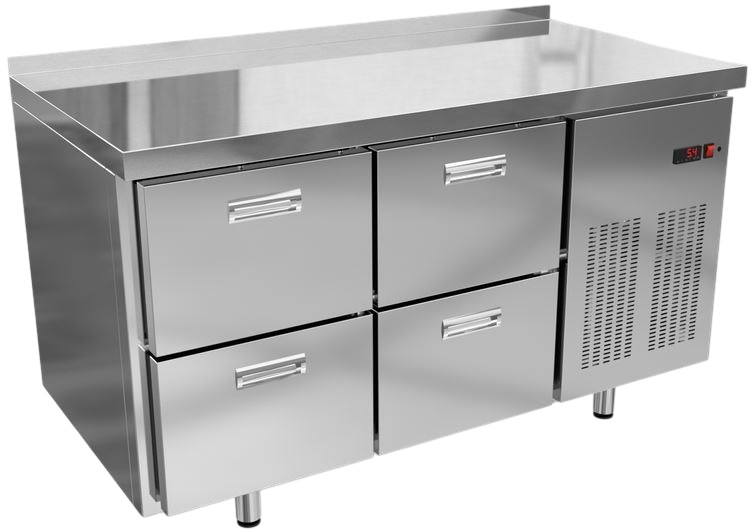 Холодильный стол KRONER СХб 4я-140-70 используется для хранения продуктов и обработки ингредиентов на предприятиях общественного питания, торговли и пищевых производствах. Модель оснащена электронным управлением, автоматической оттайкой и регулируемыми ножками. Материал цельнозаливного корпуса, ящиков и столешницы - шлифованная высококачественная нержавеющая сталь, материал задней стенки и дна - шлифованная сталь.