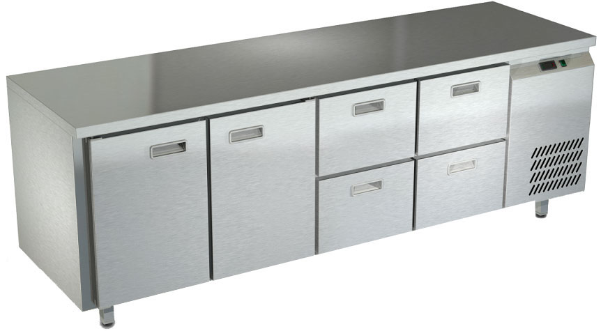Холодильный стол Техно-ТТ СПБ/О-122/24-2206 предназначен для раскатки теста, обработки, охлаждения и кратковременного хранения продуктов и напитков на предприятиях общественного питания и торговли. Модель оснащена компрессором АСС (Италия), каждая секция - направляющими и сетчатой полкой, двери и ящики - доводчиками. Корпус выполнен из нержавеющей стали, задняя стенка - из оцинкованной стали.
