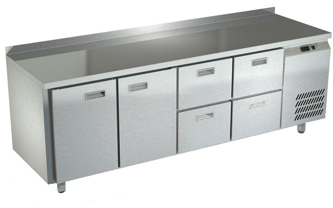 Холодильный стол Техно-ТТ СПБ/О-222/24-2207 предназначен для раскатки теста, обработки, охлаждения и кратковременного хранения продуктов и напитков на предприятиях общественного питания и торговли. Модель оснащена компрессором АСС (Италия), каждая секция - направляющими и сетчатой полкой, двери и ящики - доводчиками. Корпус выполнен из нержавеющей стали, задняя стенка - из оцинкованной стали.