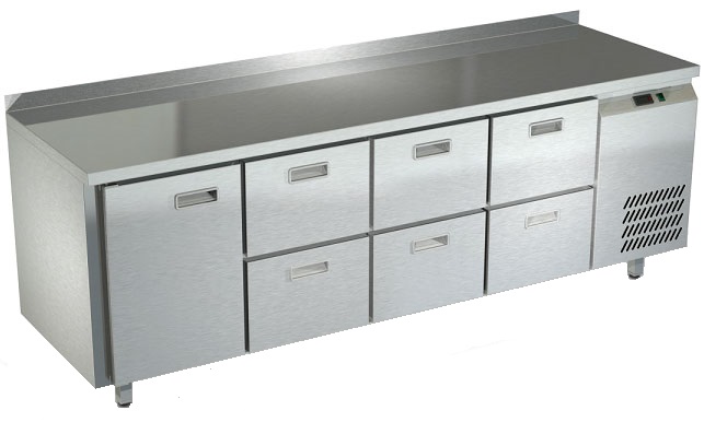 Холодильный стол Техно-ТТ СПБ/О-222/16-2206 предназначен для раскатки теста, обработки, охлаждения и кратковременного хранения продуктов и напитков на предприятиях общественного питания и торговли. Модель оснащена компрессором АСС (Италия), секция - направляющими и сетчатой полкой, дверь и ящики - доводчиками. Корпус выполнен из нержавеющей стали, задняя стенка - из оцинкованной стали.