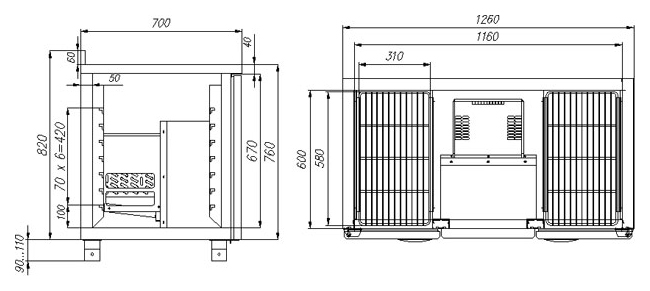 Холодильный стол Сarboma T70 M2-1 0430 (2GN/NT 11) предназначен для раскатки теста, обработки ингредиентов для приготовления блюд, охлаждения и кратковременного хранения скоропортящихся продуктов и напитков на предприятиях общественного питания и торговли. Модель оснащена 4 полками и регулируемыми ножками высотой от 90 до 110 мм. Цельнозаливной корпус выполнен из нержавеющей стали с теплоизоляцией из пенополиуретана, дверцы - из металла.