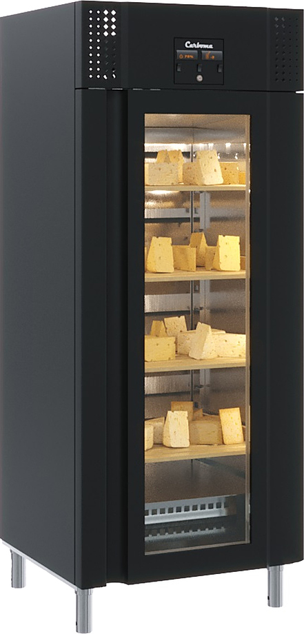 Холодильный шкаф Carboma M700GN-1-G-HHC 0430 предназначен для вызревания мяса и сыра и приготовления колбас на предприятиях общественного питания и торговли. Модель оснащена 4 полками-решетками, дверью со стеклопекетом, доводчиком и встроенным замком, регулируемыми ножками высотой от 70 до 90 мм и встроенной эргономичной ручкой. Внешняя поверхность выполнена из черной крашеной стали, внутренняя поверхность - из нержавеющей стали.