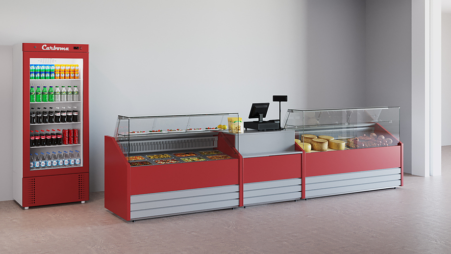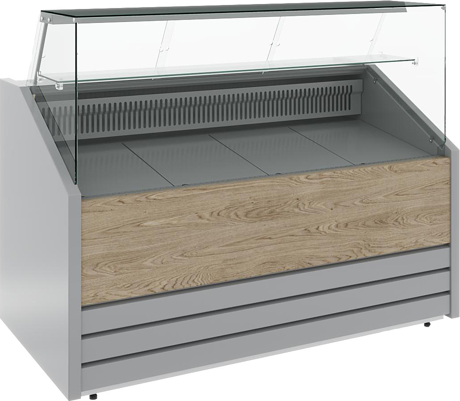 Витрина нейтральная Carboma GC75 N 1,5-1 используется на предприятиях общественного питания, торговли и пищевых производствах для демонстрационной выкладки и кратковременного хранения готовых блюд, кондитерских и хлебобулочных изделий. Модель оснащена LED-подсветкой, накопителем для продуктов и регулируемыми по высоте ножками. Материал столешницы, зоны выкладки, боковых и фронтальной панели, обшивки светильника и испарителя - окрашенная сталь в серебристый цвет, материал декоративной панели - паттерн, материал держателя стекла - высококачественная нержавеющая сталь, материал теплоизоляции - пенополиуретан.