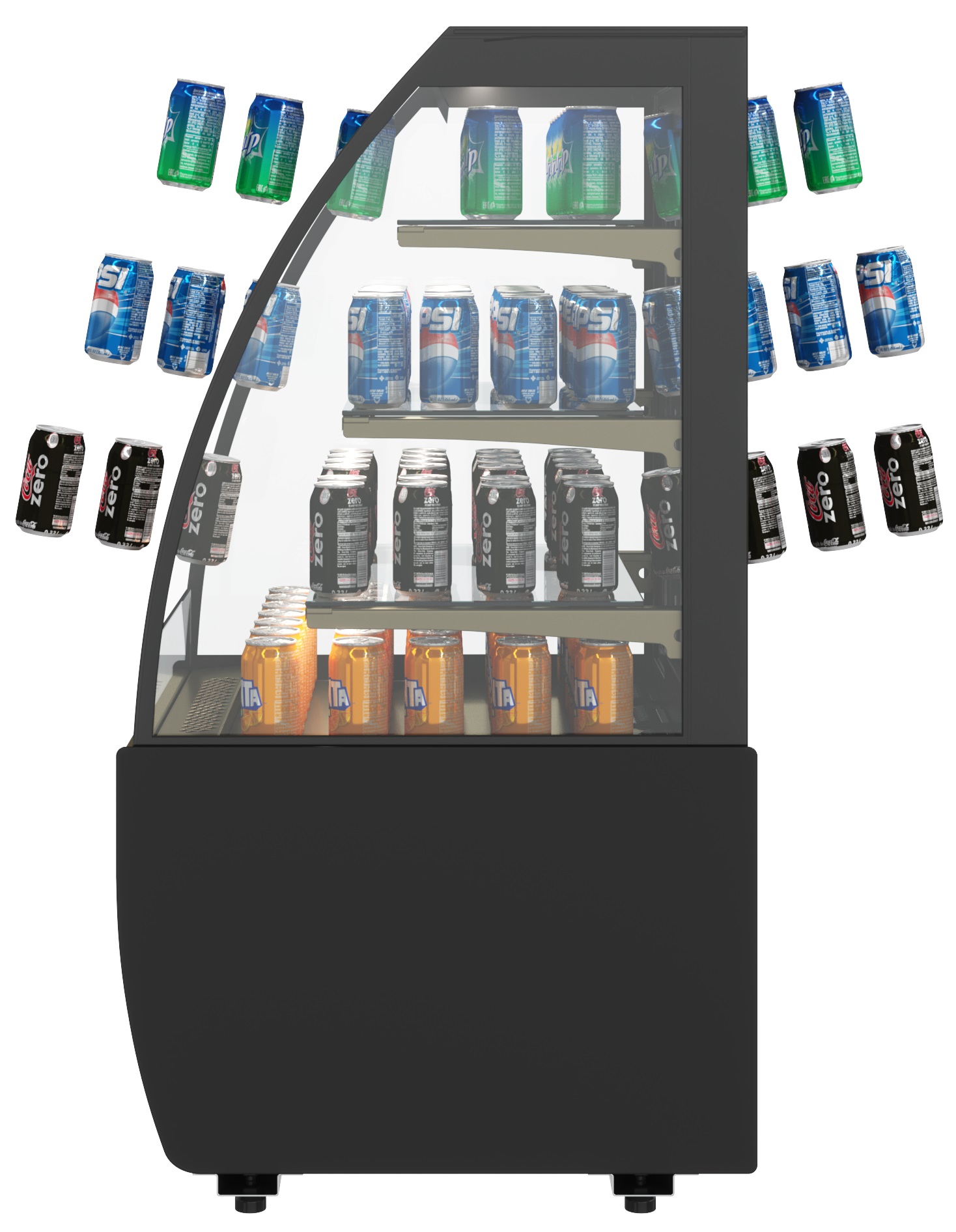 - Высота выкладки продуктов для демонстрации должна быть не более 150 мм