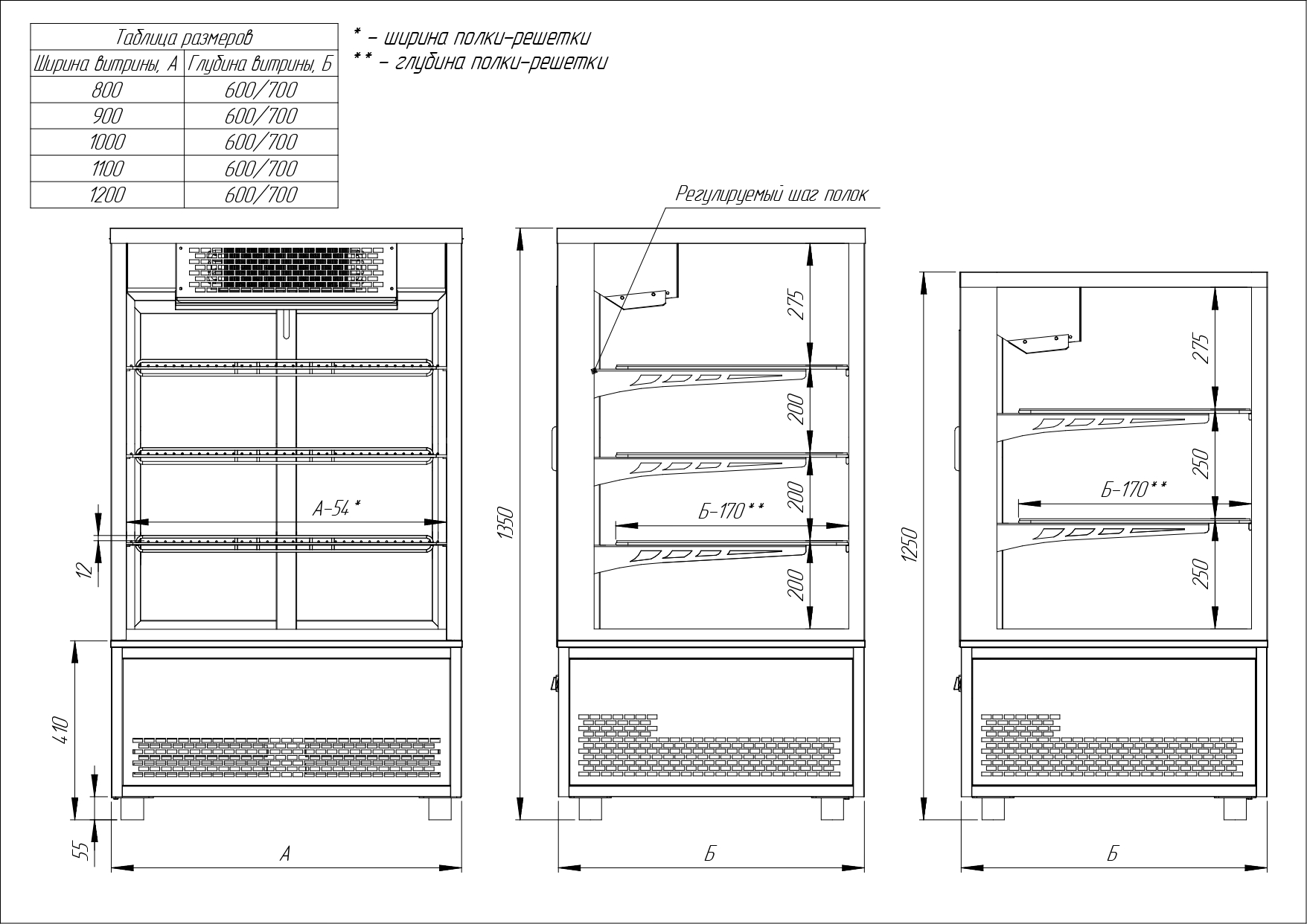 - Прозрачное остекление для оптимального обзора выкладки с 4 сторон
