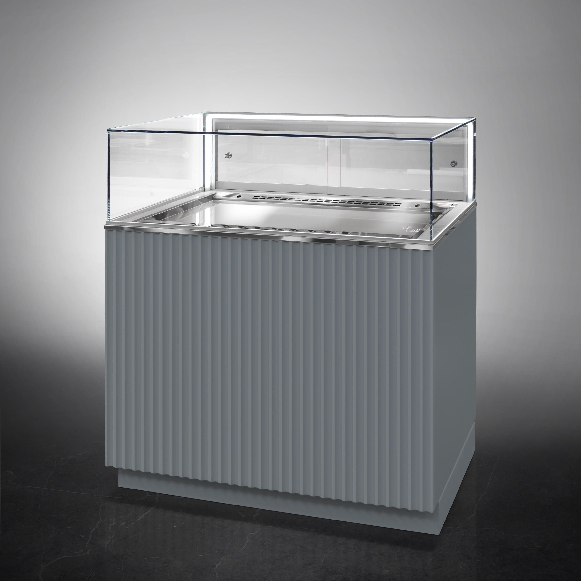 Холодильная витрина Finist GLASSIER LUX GL812-13/55/5 используется для демонстрационной выкладки, охлаждения и хранения кондитерских и хлебобулочных изделий на предприятиях общественного питания и торговли. Модель оснащена микропроцессорным блоком, автоматической оттайкой, цоколем, светодиодной подсветкой, стеклянной полкой и удобными дверцами купе. Материал фронтальных и боковых панелей облицовки - МДФ панели, материал купола - просветленное стекло, материал дна - высококачественная нержавеющая сталь.
