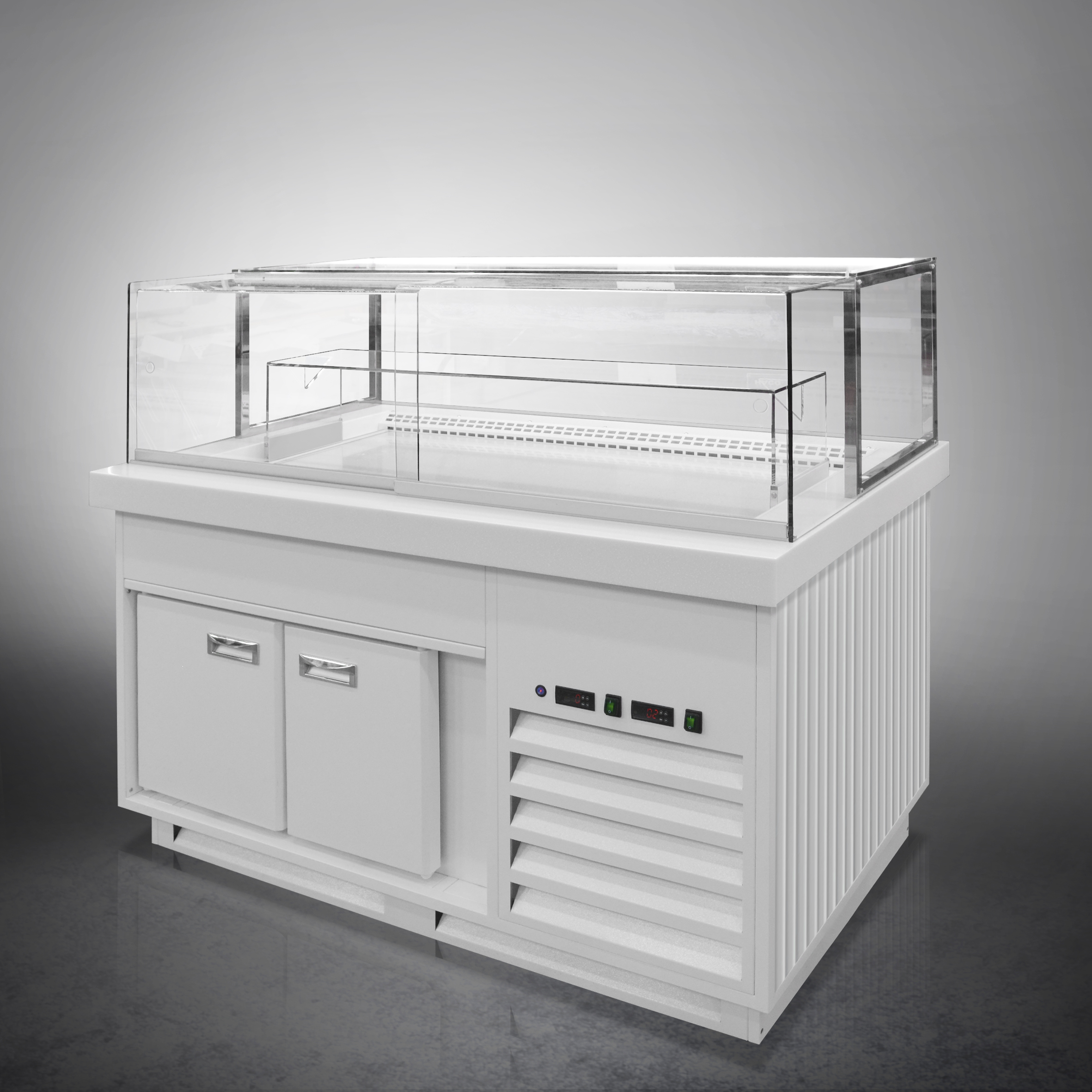 Витрина кондитерская Finist Maria Mw-17-9 используется для демонстрационной выкладки, охлаждения и хранения кондитерских и хлебобулочных изделий на предприятиях общественного питания и торговли. Модель оснащена микропроцессорным блоком, автоматической оттайкой, выдвижной полкой, подсветкой и дверьми-купе. Материал фронтальных и боковых панелей облицовки - МДФ панели, материал купола и полок - просветленное стекло, материал столешницы - дерево (лак).