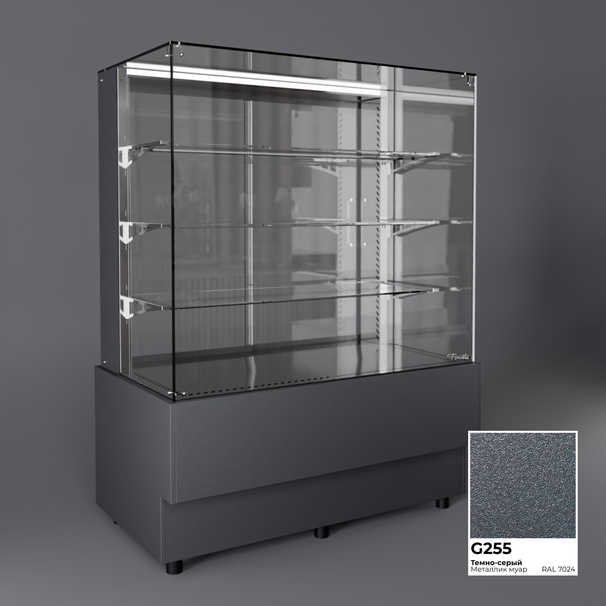 Холодильная витрина Finist AIR A-9-7-163 используется для демонстрационной выкладки, охлаждения и хранения кондитерских и хлебобулочных изделий на предприятиях общественного питания и торговли. Модель оснащена микропроцессорным блоком, автоматической оттайкой, светодиодной подсветкой каждой полки, 3 стеклянными полками и удобными дверцами купе. Материал цельнозаливного корпуса - окрашенная сталь, материал купола и полок - просветленное стекло, материал дна - зеркальная нержавеющая сталь.