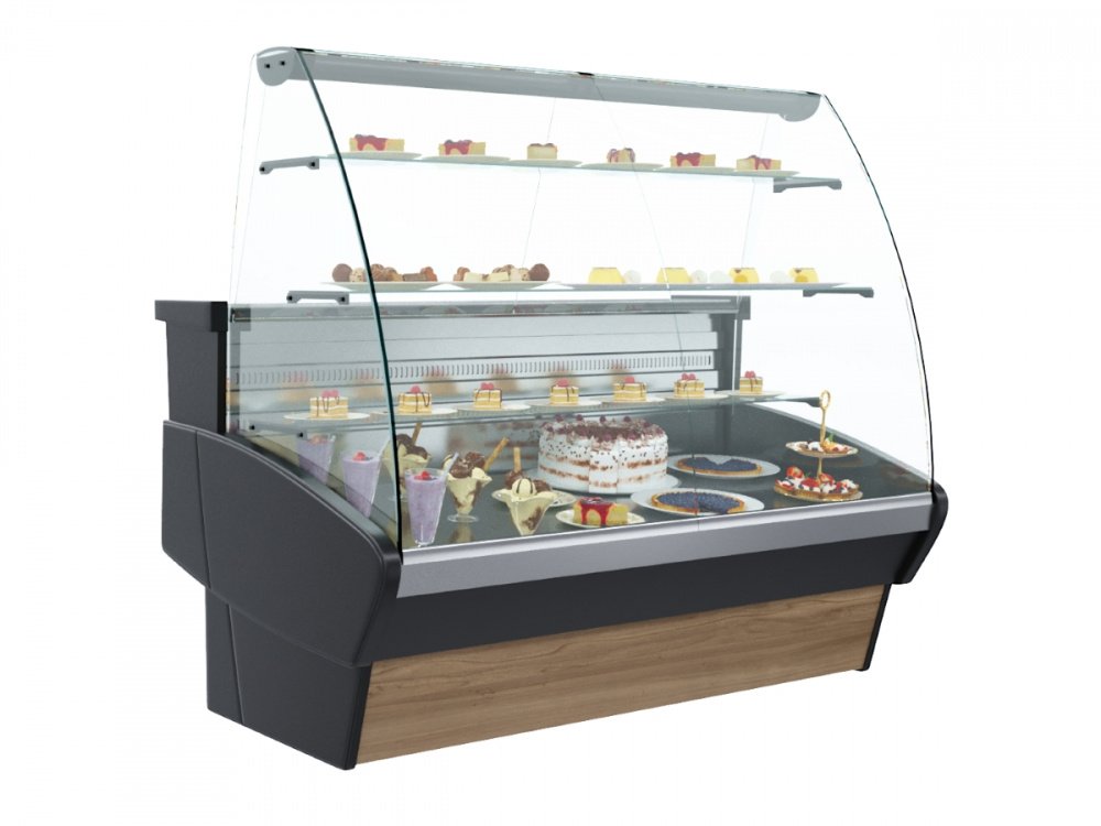 Кондитерская витрина Carboma K95 SM 1,2-1 (ВХСд-1,2) используется на предприятиях общественного питания и торговли для демонстрации, охлаждения и кратковременного хранения тортов, пирожных и других кондитерских изделий. Модель оснащена гнутым передним стеклом, 3 полками, выдвижными поддонами и регулируемыми ножками высотой от 20 до 35 м. Корпус выполнен из стали с ППУ-изоляцией, зона выкладки и столешница - из нержавеющей стали, раздвижные задние створки - из оргстекла.