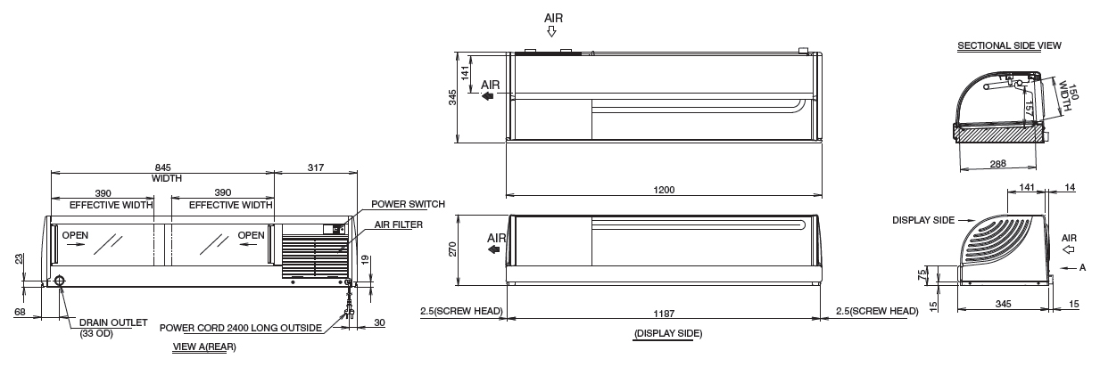 Холодильная витрина для суши Hoshizaki HNC-120-BE-R используется на предприятиях общественного питания и торговли для демонстрации рыбы, морепродуктов и блюд японской кухни. Модель оснащена агрегатом, расположенным справа, гнутым стеклом с лицевой стороны, что максимально открывает зону демонстрации продукта. Доступ к продукту максимально облегчен посредством наличия с задней стороны раздвижных прозрачных дверец, которые плюс ко всему позволяют легко производить чистку внутри рабочей камеры. Корпус выполнен из прочного ABS-пластика, рефрижератор - из нержавеющей стали.