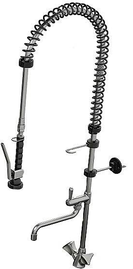 Душирующее устройство CanCan CC.MT08 предназначено для мытья овощей и фруктов и удобного удаления крупных остатков пищи с кухонной посуды и инвентаря перед загрузкой в посудомоечную машину в моечных цехах, на предприятиях общественного питания, торговли и пищевых производствах. Материал устройства - нержавеющая сталь, шланга - каучук в металлической оплетке, трубы, кран-буксы, арматуры и системы крепления к стене - хромированная латунь.