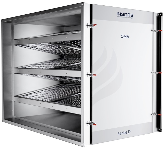 Искрогаситель INSORB OMA SERIES D 2.0 «сухого» типа используется на предприятиях общественного питания, торговли и пищевых производствах для улавливания искр пламени от открытого огня. Модель оснащена встроенной автоматикой к NSORB Cloud, форсунками, фильтром лабиринтного типа, редуктором давления, датчиком температуры и клапаном открытия воды. Материал изделия – высококачественная нержавеющая сталь AISI 304.