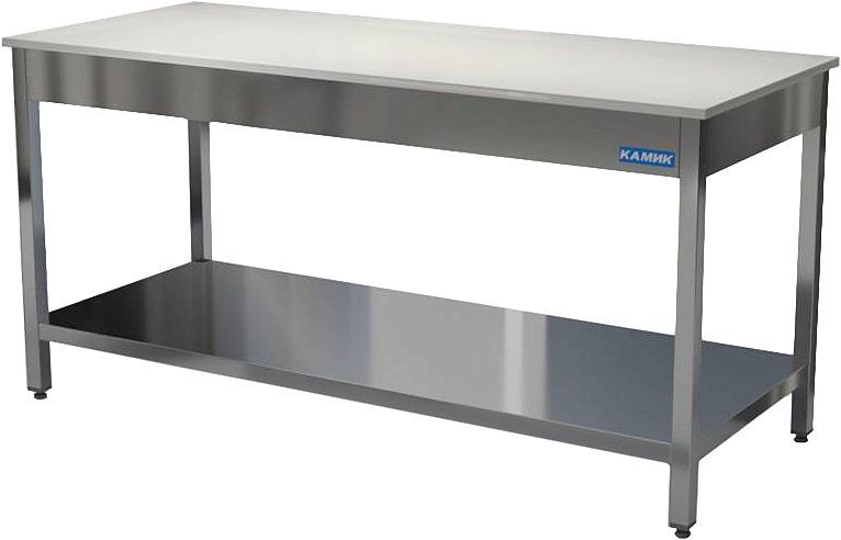 Разделочный стол КАМИК С-СПР-4148+П используется на предприятиях общественного питания и торговли для разделки и приготовления различных блюд. Каркас стола выполнен из нержавеющей стали AISI 430, столешница - полипропилен толщиной 20мм. Ножки - труба 40х40 мм.