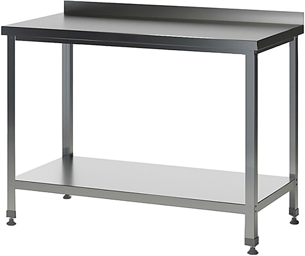 Производственный стол Astropit АСРБ-13060-УОПО используется на предприятиях общественного питания, торговли и пищевых производствах для раскатки теста, приготовления различных блюд и хранения кухонных принадлежностей. Материал рабочей поверхности – нержавеющая сталь AISI 430, материал сплошной полки – оцинкованная сталь, полка усилена листом ДСП (толщина 16мм).