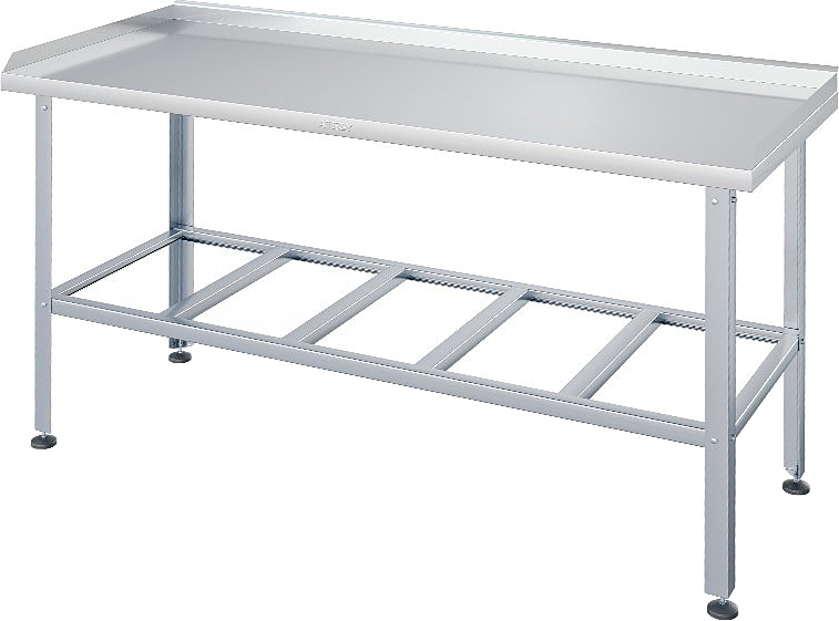 Производственный стол ATESY СР-С-3-600.700-02 серии Стандарт используется на предприятиях общественного питания, торговли и пищевых производствах для раскатки теста, приготовления различных блюд и хранения кухонных принадлежностей. Материал рабочей поверхности – нержавеющая сталь AISI 430 усилена листом ЛДСП (толщина 16 мм), материал каркаса – оцинкованный уголок (толщина 1.2 мм), конструкция - разборная.