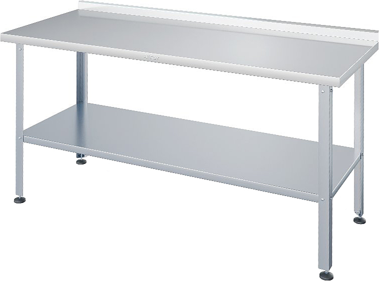 Производственный стол ATESY СР-С-1-1100.600-02-ПСОц серии Стандарт используется на предприятиях общественного питания, торговли и пищевых производствах для раскатки теста, приготовления различных блюд и хранения кухонных принадлежностей. Материал рабочей поверхности – нержавеющая сталь AISI 430 усилена листом ЛДСП (толщина 16 мм), материал каркаса и сплошной полки – оцинкованная сталь, конструкция - разборная.