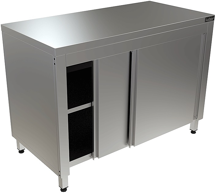 Стол производственный Кобор СТ-150/60/К используется на предприятиях общественного питания, торговли и пищевых производствах для хранения кухонной утвари и обработки различных ингредиентов перед приготовлением. Материал каркаса - высококачественная нержавеющая сталь (труба 40х40 мм), материал столешницы - высококачественная нержавеющая сталь AISI 430, усиленная листом ЛДСП (толщина 16 мм).